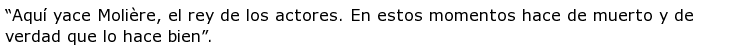 - Fue durante la representación de su obra El enfermo imaginario cuando empezaría su final. Y es que se sintió indispuesto y murió poco después. Curiosamente había dejado escrito su epitafio en el que se lee así: